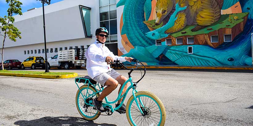 Hop on an electric bike and explore Cozumel! On this 11-12 mile cycling experience you will visit the most iconic landmarks, monuments, and murals of the island and enjoy a fun guided tour with our amazing tour guides!